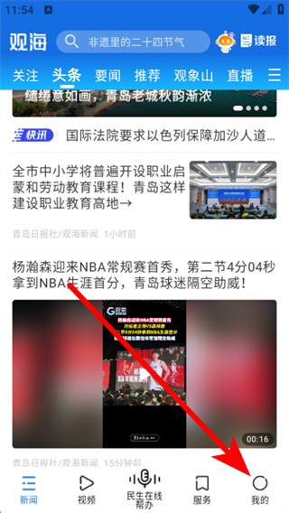 1、打開觀海新聞APP,點擊底部我的,進入個人的頁面。