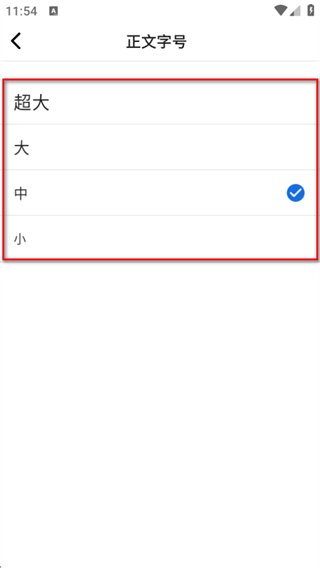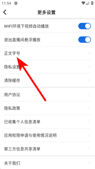 3、在更多設置的頁面,點擊正文字號,進入正文字號選擇頁面。