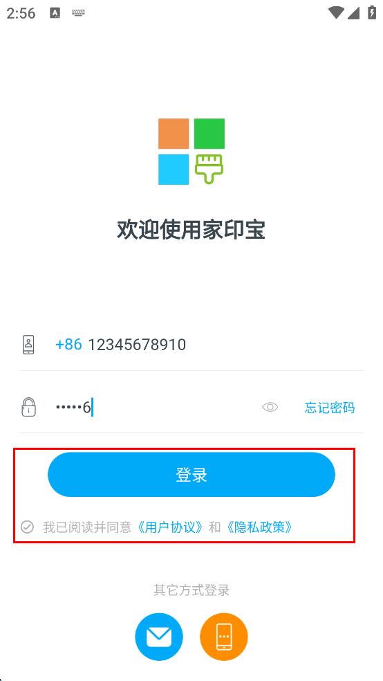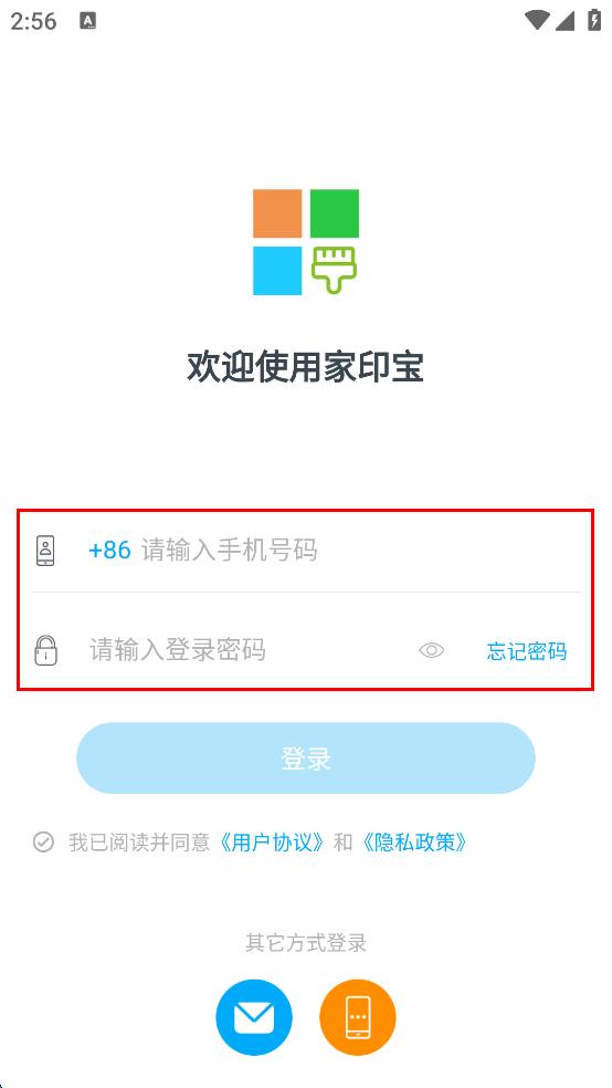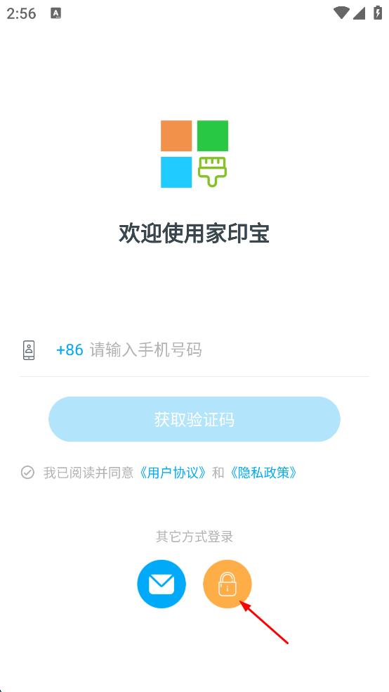 1、打開家印寶APP,在登錄頁面點擊密碼登錄選項。