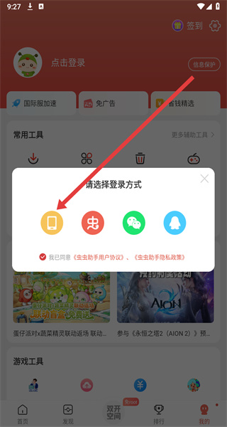 3、在登錄方式選擇窗口里,點擊手機樣式的圖標,進入手機驗證登錄界面。