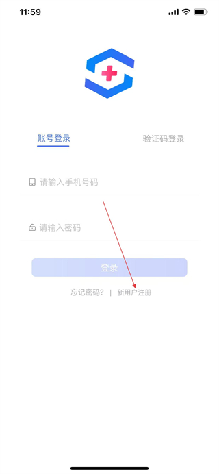 1、打開施強健康APP,在登錄頁面點擊新用戶注冊。