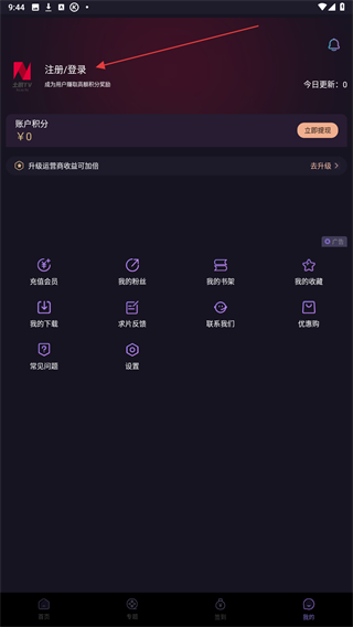 2、進(jìn)入個(gè)人中心的頁(yè)面內(nèi),用戶需點(diǎn)擊注冊(cè)/登錄的功能按鈕。