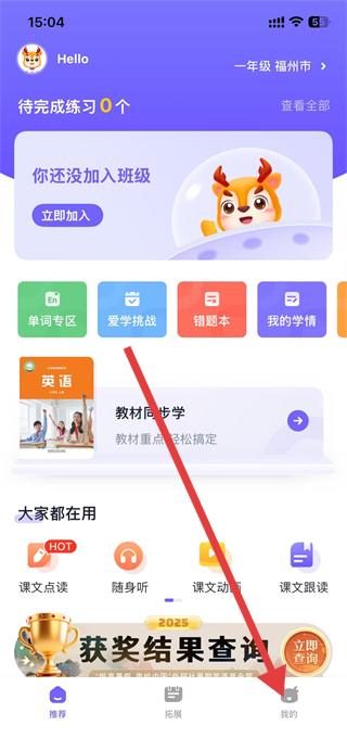 1、打開外研優(yōu)學(xué),點(diǎn)擊底部導(dǎo)航欄中的我的。