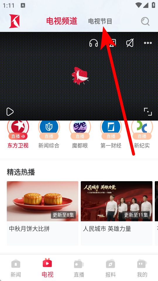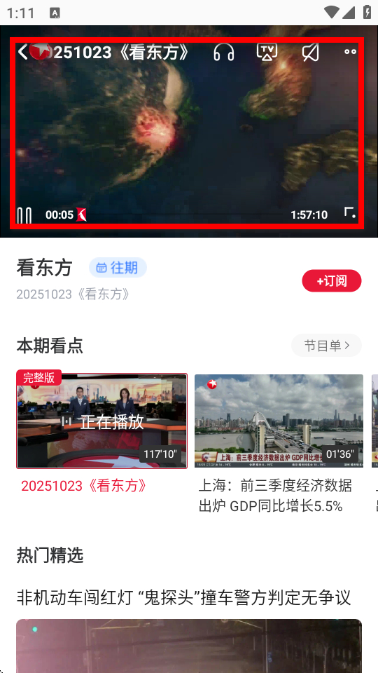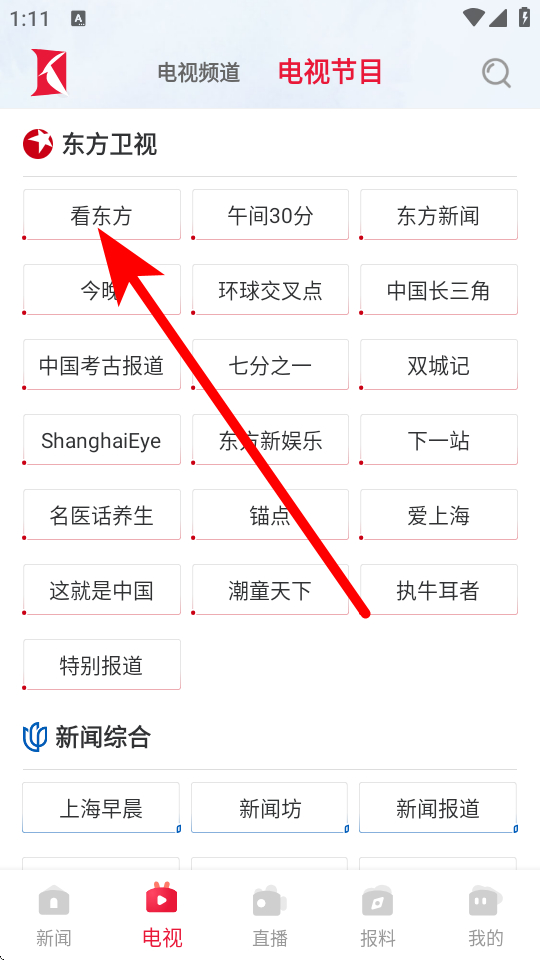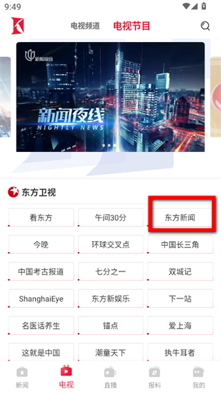 3、在節(jié)目列表頁面,選擇東方新聞等節(jié)目,進(jìn)入節(jié)目播放頁面。