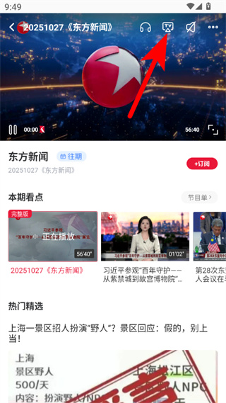 4、在節(jié)目播放頁面,找到投屏圖標(biāo)并點(diǎn)擊,即可進(jìn)行投屏操作。
