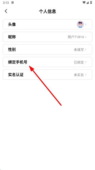 2、在個人信息頁面,找到綁定手機號選項并點擊。