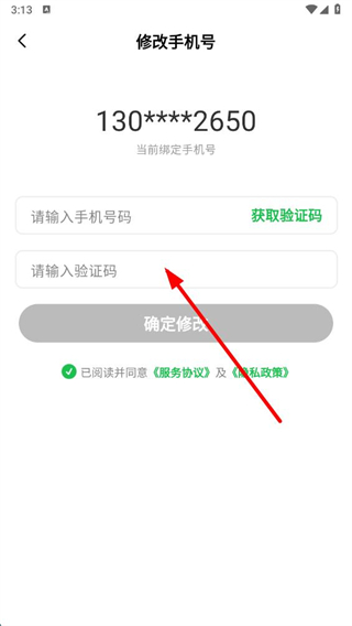 3、在頁面輸入新手機號,獲取驗證碼,點擊確定修改按鈕,完成手機號碼修改。