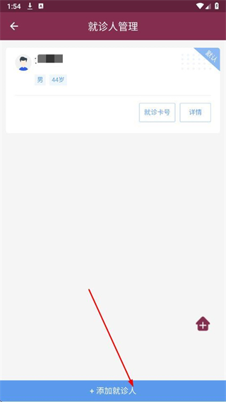 3、在就診人管理頁(yè)面,點(diǎn)擊+添加就診人按鈕。