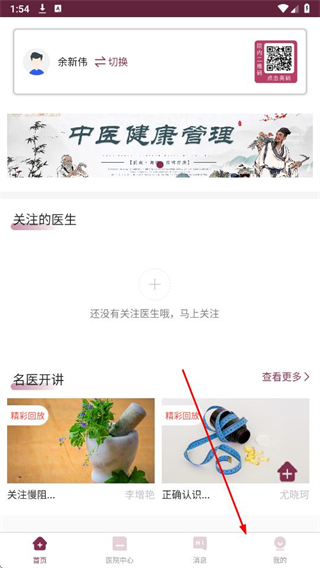 1、打開(kāi)鄭州人民醫(yī)院APP,點(diǎn)擊導(dǎo)航欄中的我的。