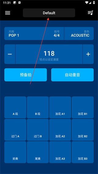 1、打開BeatStation應(yīng)用,點(diǎn)擊頂部的Default區(qū)域。
