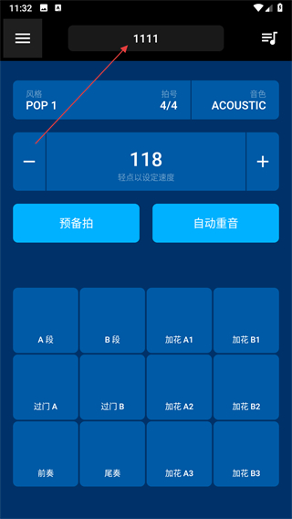 每種節(jié)奏型包含12個(gè)節(jié)奏樂段,包括主歌、副歌、六種加花、兩種過門、前奏和尾奏,你可以通過12個(gè)鼓墊自由控制這些樂段的演奏。