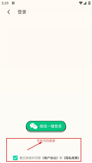 3、進(jìn)入登錄頁(yè)面,點(diǎn)擊“手機(jī)號(hào)碼登錄”選項(xiàng),勾選同意協(xié)議。