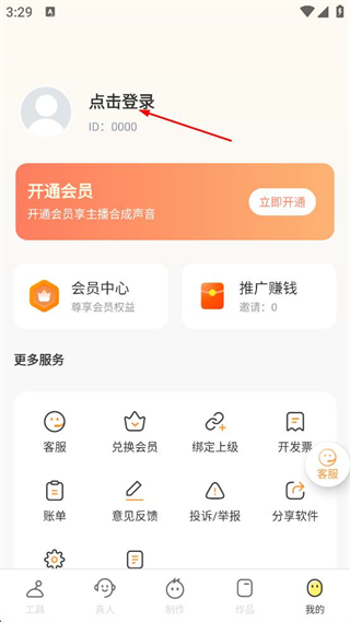 2、在“我的”頁(yè)面,點(diǎn)擊“點(diǎn)擊登錄”區(qū)域。