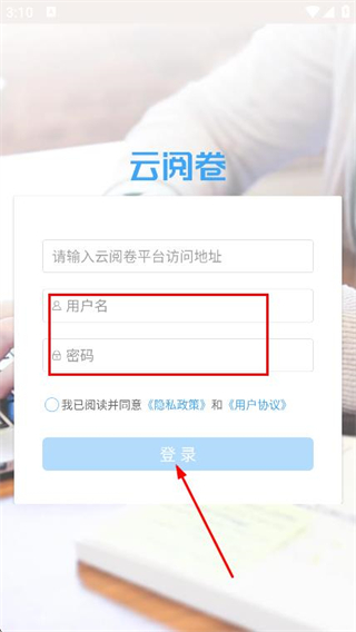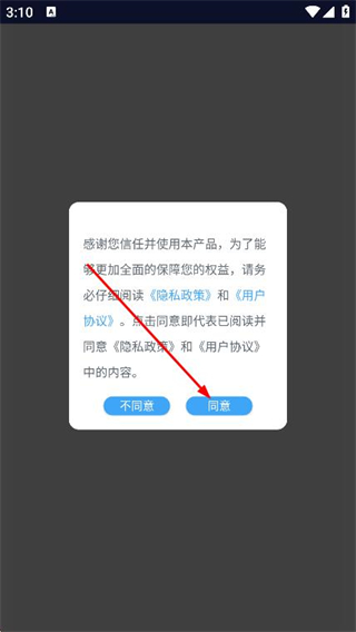 1、打開云閱卷app,在彈出的窗口中,點擊同意按鈕。