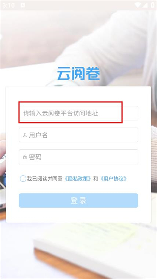 2、在登錄頁面,在輸入框中,填寫平臺訪問地址。