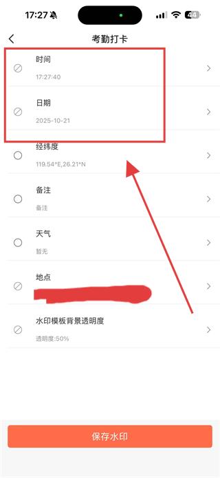 4、分別點(diǎn)擊時(shí)間和日期選項(xiàng),按照需求修改時(shí)間和日期,修改完成后可保存水印設(shè)置。