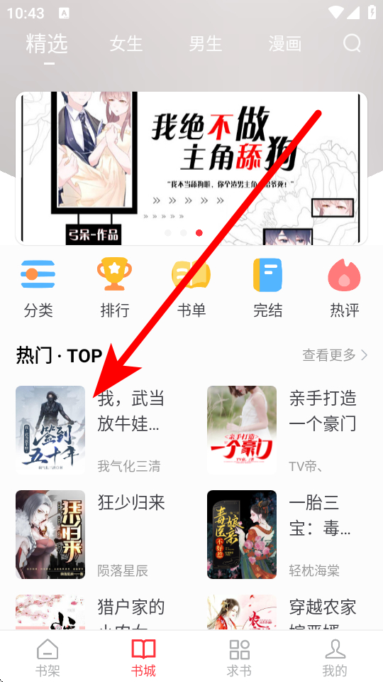 2、在書城界面,點(diǎn)擊想要聽的小說,如我,武當(dāng)放牛娃,進(jìn)入小說詳情頁面。