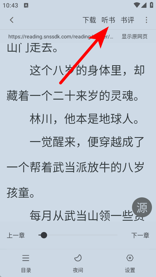 4、在小說閱讀界面,點(diǎn)擊上方聽書選項(xiàng),即可開始聽書操作。