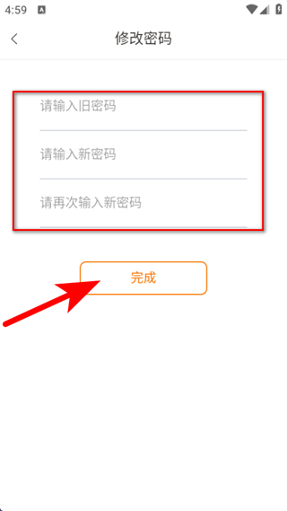 4、輸入舊密碼、新密碼并再次確認(rèn)新密碼,點(diǎn)擊完成,完成密碼修改。