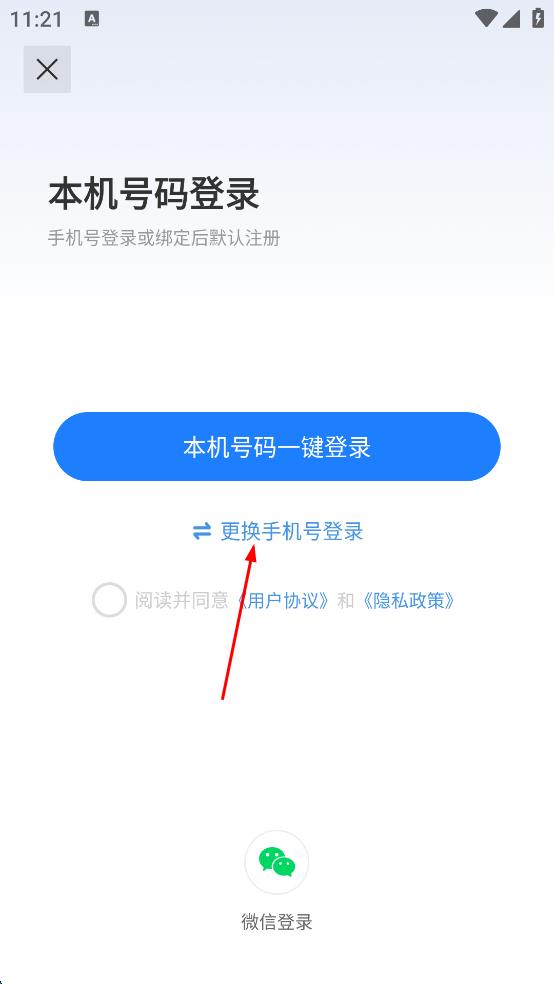 3、在登錄頁面點擊更換手機號登錄,進行手機號登錄。