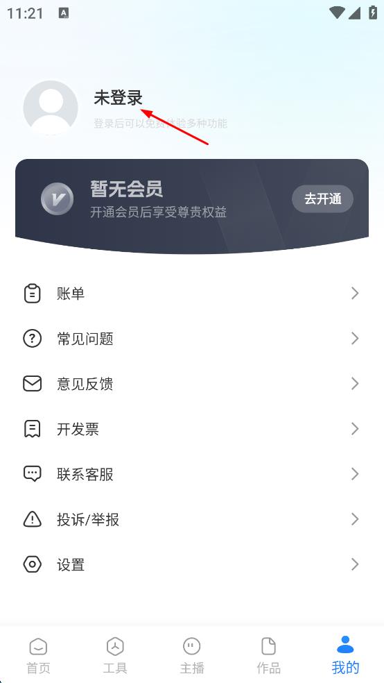 2、進入我的頁面后,點擊未登錄按鈕。