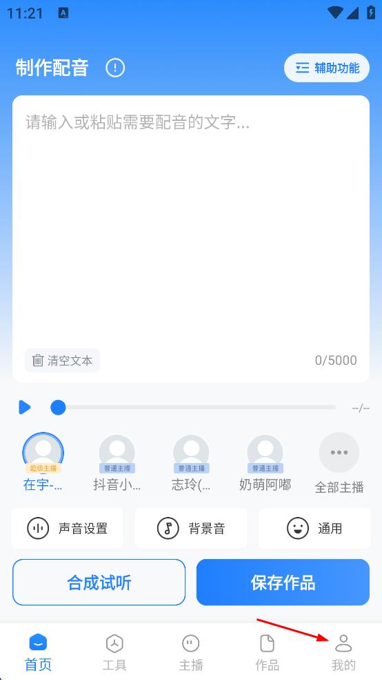 1、打開配音APP,在首頁點擊右下角我的。