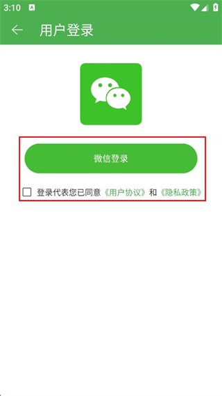 3、在用戶登錄頁面,勾選同意用戶協(xié)議和隱私政策,點(diǎn)擊微信登錄。