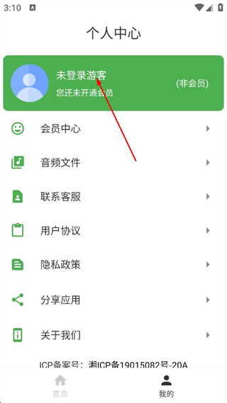 2、進(jìn)入個(gè)人中心頁面,點(diǎn)擊未登錄游客。