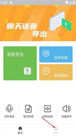 1、打開聊天語音導(dǎo)出軟件,點(diǎn)擊右下角我的。