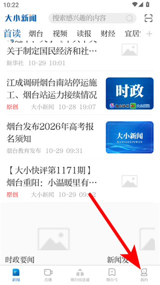 1、在大小新聞首頁,點擊右下角我的選項,進入個人中心界面。