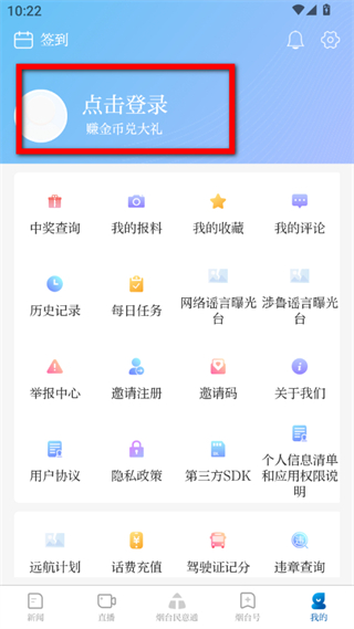 2、在個人中心界面,點擊點擊登錄選項,進入登錄頁面。