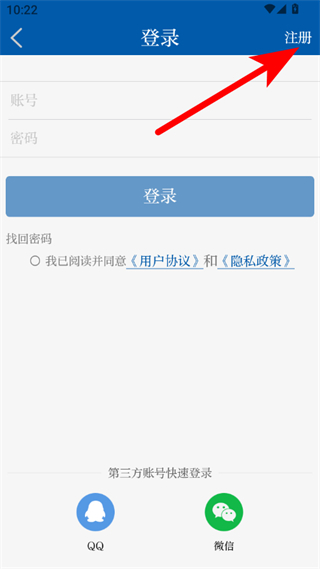 3、在登錄頁面,點擊右上角注冊選項,進入注冊頁面。