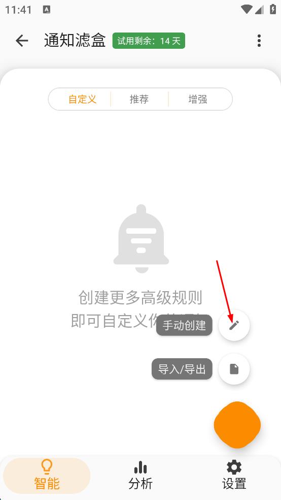 2、進入智能頁面,點擊右下角橙色加號按鈕。