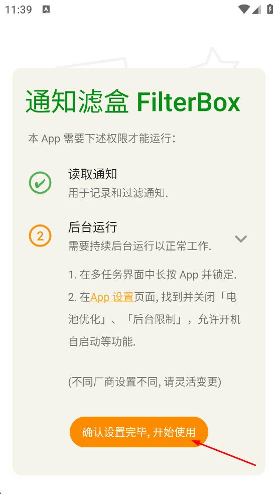 1、打開通知濾盒FilterBox,點擊確認(rèn)設(shè)置完畢,開始使用。