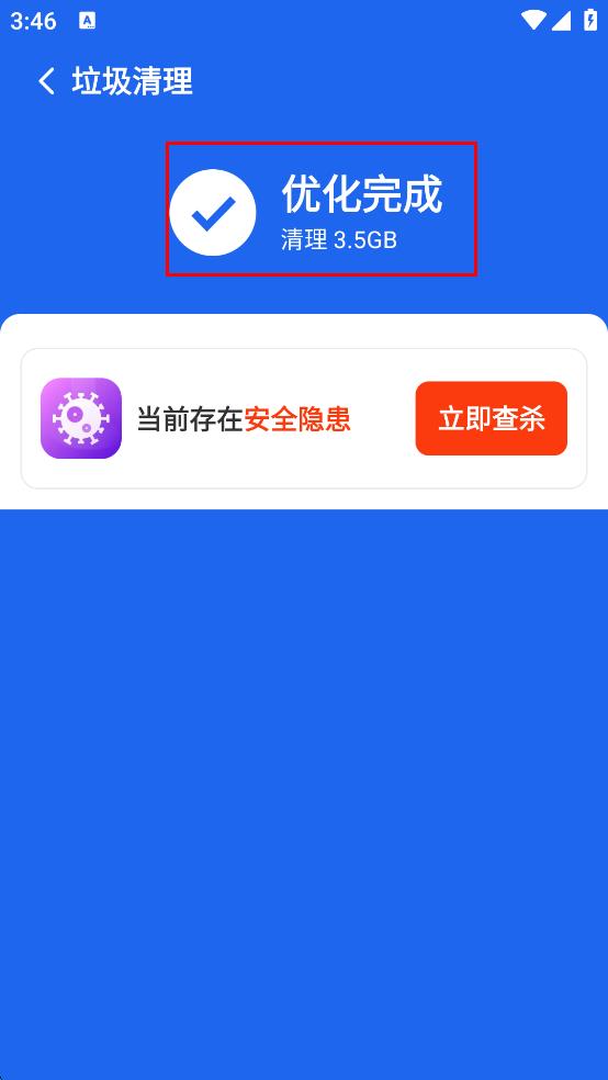 4、掃描完成后,APP自動(dòng)清理垃圾,顯示優(yōu)化完成,完成垃圾清理操作。