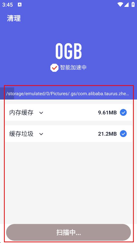 3、APP開始掃描手機(jī)垃圾,等待掃描完成。