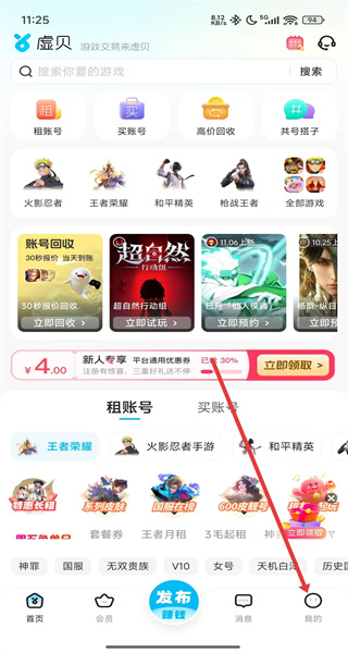1、打開虛貝租號(hào)app,點(diǎn)擊底部導(dǎo)航欄中的我的選項(xiàng)。