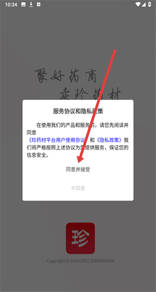 1、在打開App后,可以點(diǎn)擊彈窗中的同意并接受按鈕,進(jìn)入使用。