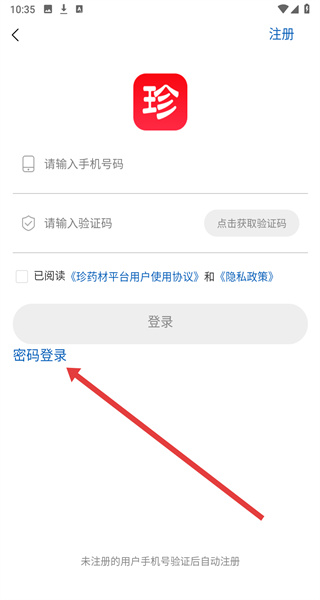 3、在進(jìn)入到登錄頁面后,可以點(diǎn)擊下方密碼登錄按鈕,切換登錄方式。
