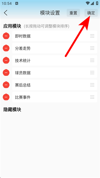 4、在模塊設(shè)置頁面,可對即時數(shù)據(jù)等應(yīng)用模塊進行排序或隱藏設(shè)置,完成后點擊確定。