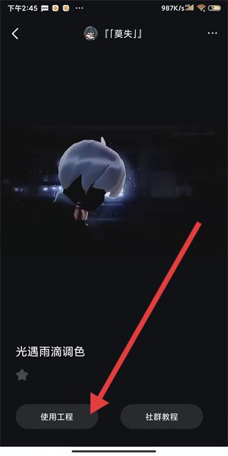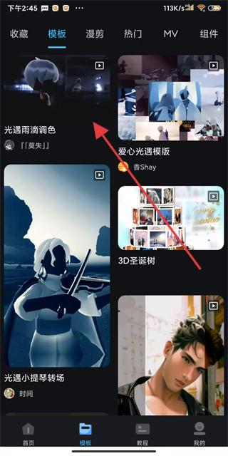 2.在模板界面,挑選喜歡的3D魔秀模板,如光遇雨滴調(diào)色模板并點(diǎn)擊。