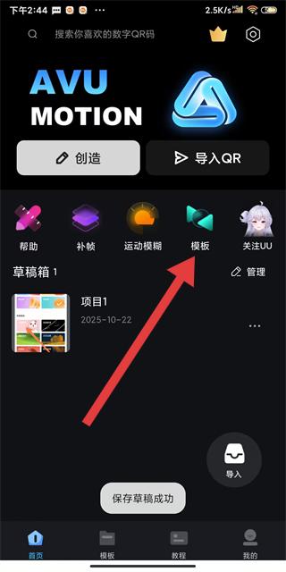 1.打開美冊(cè)軟件,在首頁點(diǎn)擊模板按鈕進(jìn)入模板選擇界面。