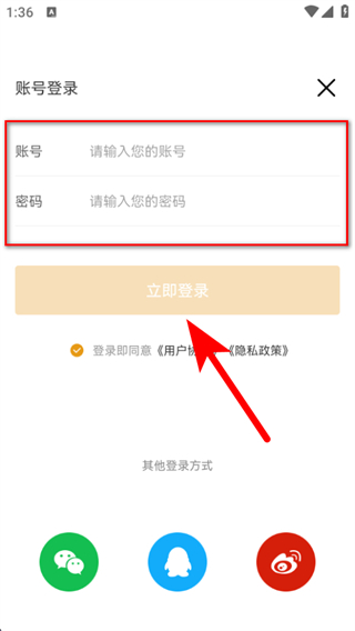 4、在賬號(hào)密碼登錄頁(yè)面,輸入賬號(hào)和密碼后,點(diǎn)擊立即登錄完成操作。