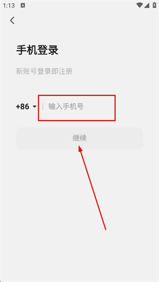 3、在輸入框中填寫需要登錄的手機號,點擊繼續(xù)。