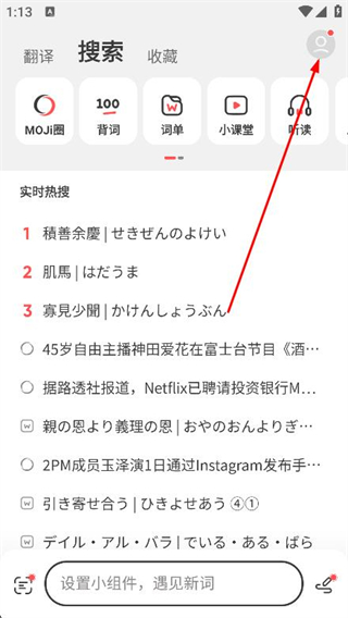 1、打開中日辭典app,點擊右上角的頭像圖標。