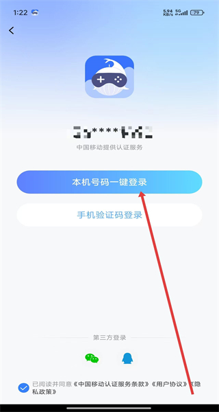 4、點擊選擇“本機號碼一鍵登錄”按鈕,完成賬號登錄。