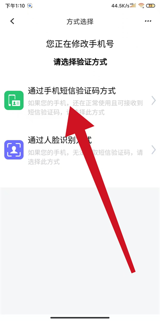 2、在方式選擇頁面選擇驗證方式,進入修改手機號頁面。