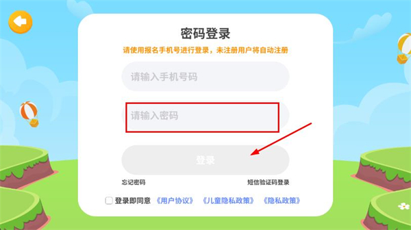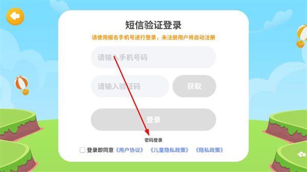 2、在登錄頁面,找到并點擊下方的密碼登錄選項。