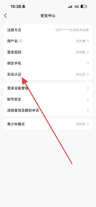 3、進(jìn)入安全中心頁(yè)面后,點(diǎn)擊實(shí)名認(rèn)證選項(xiàng)。