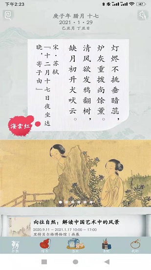 2、你可以看到“日見(jiàn)詩(shī)痕”、“每候一色”、“千載今朝”等欄目,希望大家開(kāi)卷有益,借此拋磚引玉。